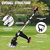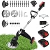 - Complete Cordless Trimming Kit: Includes 2x 1.5Ah batteries (40 mins runtime per charge), fast charger, 6 grass heads, maintenance tools, and replacement blades. The lightweight 4.8lb design with auxiliary wheel supports easy maneuverability across slopes and uneven terrain.It is recommended to operate the lawn mower for 30-45 minutes and then allow a rest period of approximately 15 minutes to let the motor cool down