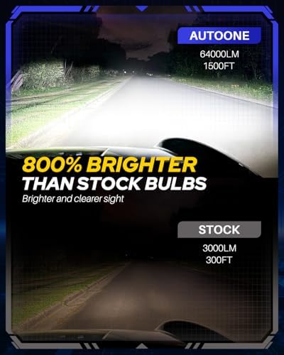 - See Wider and Further: Upgraded CSP LED chips, AUTOONE 9005 9006 bulbs combo offers 64,000lm light output than original bulbs and white 6500K color temperature. Providing further and wider visibility for night driving to ensure the front is well lit. You can see road conditions clearly from miles away and take action earlier to keep you safe on the road.