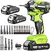 - 【2 x 21V Batteries 】– Includes two 2.0Ah rechargeable lithium-ion batteries with power indicators for extended runtime. Swap batteries easily to keep this Cordless Impact Driver running continuously—perfect for garage repairs, jobsite tasks, and household projects