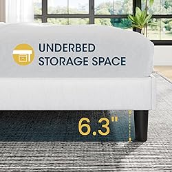 Adjustable Headboard Height: The diamond-tufted upholstered headboard features adjustable height settings, allowing you to customize it to match your mattress thickness and achieve your desired look Elegant Diamond Tufting: Upholstered in soft fabric with classic diamond-pattern button tufting, this bed frame adds a touch of luxury and sophistication to any bedroom décor Strong Structure: Built with a sturdy combination of wood slats and a central metal support bar, this frame offers reliable mattress support Quick and Quiet Assembly: The wooden slats are secured with hook-and-loop strips, making the installation faster, more stable, and virtually noise-free during use No Box Spring Needed: Durable slat support system holds your mattress firmly in place, reducing sagging while eliminating the need for a box spring