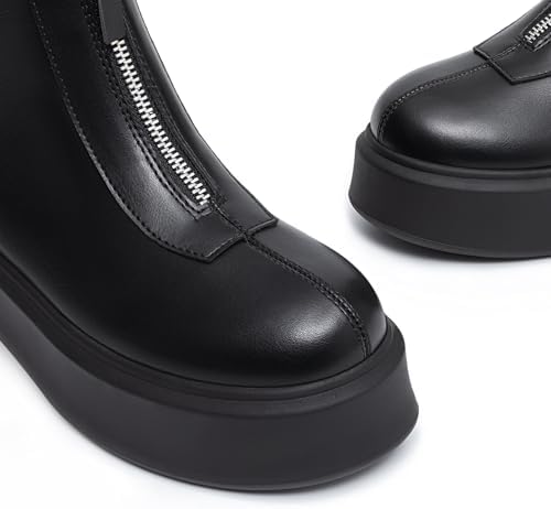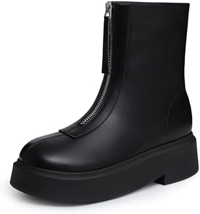 Athlefit Women's Platform Ankle Boots Short Comfortable Round Toe Chunky Low Heel Boots with Front Zipper