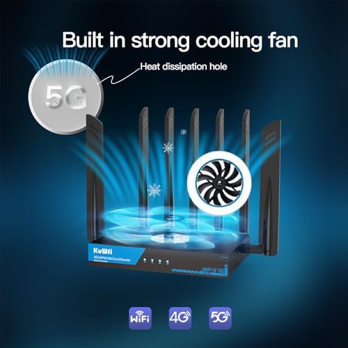 - 【 Cooling System】5G SIM Router Gigabit WiFi 6 Router with Cooling Fan - Dual-Band AX3000, Continuous Cooling System, 256 Devices Support, WPA3 Continuously cooling down while working,brings higher security, better network efficiency and longer battery life