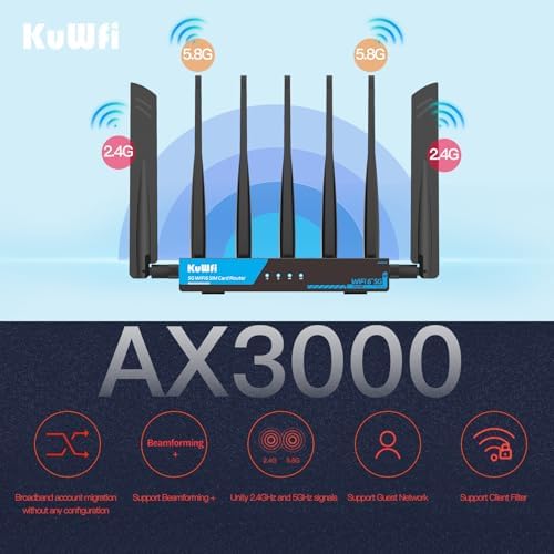 KuWFi Industrial Cellular 5G Router with Dual SIM Slot for Apartment & RV Rural Area|Unlocked for Verizon/AT&T| WiFi 6 Dual-Band 3000Mbps|2.5G Ethernet|WireGuard VPN|M2M/IoT Global Frequency Bands