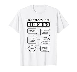 - Funny graphic design showing a logic tree of debugging, saying 6 stages of debugging that can't happen that doesn't happen on my machine that shouldn't happen. Funny programmer design perfect for any programmer with a sense of humor who likes a funny joke. Funny Programmer's Design Stages of Debugging Programmer design makes a perfect gift for any computer programmer or developer.