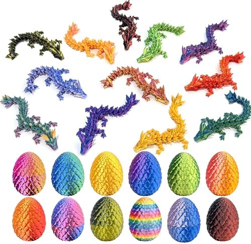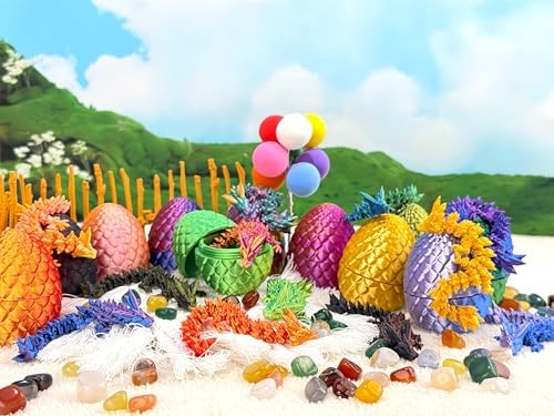 12 Pcs 3D Printed Dragon Eggs with Dragon Inside – Fantasy Collectible, Home & Office Decor (Random Colorful)
