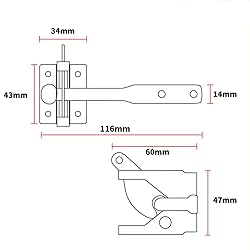 - Features: This is designed for garden fencing pasture farm door security parts Easy to operate, fixed hasp latch with a screw on the door firstly, close the door and put latch pole into lock holes, and the door won't open. Of course, in order to safety, you also can add a lock on it. Material: Electroplated Steel Color: Silver Size: 116*43mm, 60*47mm Package list: 1 Set Fence door latch 1 pack of screws Note: 1.Please allow 0.1-2cm error due to manual measurement. 2.The color may have different as the difference display, pls understand.