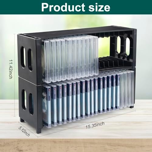 - 2 Pack CD Organgizer: 2 pack cd organizer stack size is 15.35*5.12*11.42inch. CD storage rack features multiple compartments, providing ample space to hold a large collection of CDs. Each slot is designed to securely hold CDs without the risk of scratches or damage. It can accommodate up to 40 CDs, making it perfect for music enthusiasts who want to keep their entire collection organized and easily accessible.