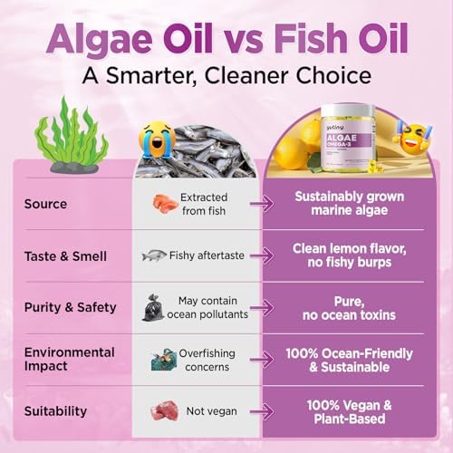 - Plant-Based Omega-3 Power: Sourced from algae oil, delivering 1000 mg of Omega-3, including 600 mg DHA and 300 mg EPA, this algae omega 3 supplement is 100% vegan and free from fishy aftertaste