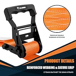 - SALUINOKI E-Track Ratchet Straps 2" x 16ft Heavy Duty, Box Truck Cargo Strap, Etrack Accessories, 2200lbs Working Load for Trailer Orange 6 Pack