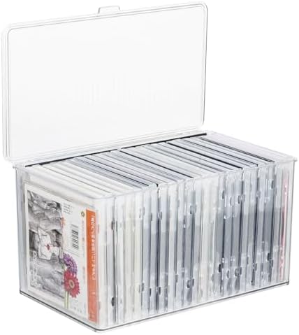 Rainmae CD Storage Box Clear Plastic CD Organizer DVD Storage Box with Lid -Hold up to 26 CDs, DVDs Cases Storage Container Shelf Organizer Bin for DVDs,Video Games, Blu-ray, Books, Home, Office Features: The stackable clear plastic CD storage box is perfect for organizing your music CDs, movie discs, and more. With a large capacity to hold up to 30 discs, it features high transparency for easy viewing and snap-tight latches to keep dirt out. Made from durable plastic, this box is ideal for your theater room, living room, or playroom, helping you maximize space while keeping your collection in great condition. Specifications: Material: Plastic Color: Clear Size: 6.4'' x 10.6'' x 5.9'' Package includes: 1 × CD Storage Box Notes: For manual measurement, please allow slight errors in size. The color may have a slight difference due to different screen displays.