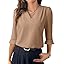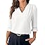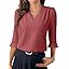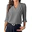EVALESS Women's 3/4 Sleeve Tops Dressy Casual Pleated V Neck Business Work Blouses Office Shirts