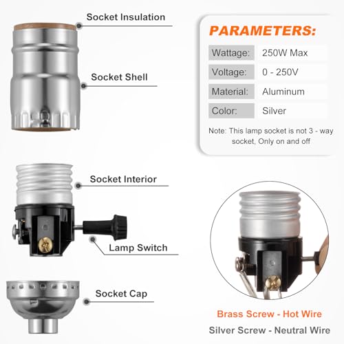 - 【Easy Installation】- As lamp replacement parts, the light socket with standard E26 base is simple to install by yourself. Just a few minutes to set up - 1: Thread the wire through the cap hole; 2: Tying a ul knot(prevent falling off); 3: wind the wires around the screws; 4: Cover the housing; 5: Screw in a bulb; Saving money and time to call an electrician and replace whole light fixture.