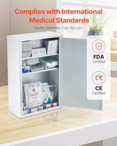 - Wall-Mount & Desktop Design: This first aid medicine cabinet can be securely placed on any tabletop or mounted on the wall, making it easy to access in an emergency. Plus, its child-proof features keep little ones from tampering with it