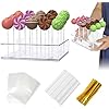 2 Pack Cake Pop Stand with Sticks Kit, Acrylic Cake Pop Display Holder with Base, Clear Lollipop Stand, 15 Holes Candy Pop Holder with 100 Pcs Sticks, 100 Pcs Clear Wrappers, 100 Pcs Gold Twist Ties