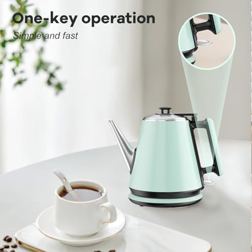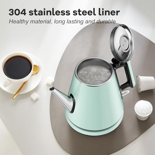 - 【0.9L Compact Size, Space-Saving】- Designed for small kitchens, dorms, or offices, this 0.9L electric kettle saves counter space while delivering enough hot water for 2-3 cups. Features a food-grade 304 stainless steel interior for hygiene and safety, paired with a heat-resistant plastic exterior for durability. Its mint green retro design adds a modern touch, perfect for coffee lovers or small households.