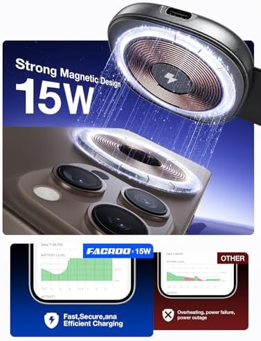 - 【15W Fast Charge Design】: The travel charger for mulple devices, quickly charge the iPhone 16/15/14/13/12 series with up to 15W of power. In addition, It also charges both for AirPods 5W (Note: Airpods 2/3 require wireless charging case) and Apple Watch 3W. The charger charges almost as fast as for the original Mag-Safe charger, taking your iphone from 0% to 100% capacity in just 2-3 hours.(depending on battery condition and ambient temperature)