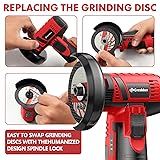- Complete Kit & Versatile Applications: The cordless angle grinder package comes fully stocked: 1 Cordless Angle Grinder, 5 Cutting Wheels, 1 Charger, 2 Batteries, and a Wrenches. This grinder tool is a multi - functional powerhouse, ideal for grinding, cutting, sanding, and polishing a wide range of materials like metal. Whether it's a DIY project or a professional job, this angle grinder has got you covered