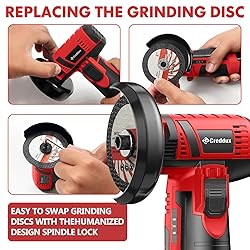 Creddux Cordless Angle Grinder, 3 Inch Mini Angle Grinder Tool With 2pcs 16.8V 2000mAh Batteries and 5 Grinding Wheel,19500rpm Metal Grinders for Cutting, Grinding and Polishing Red