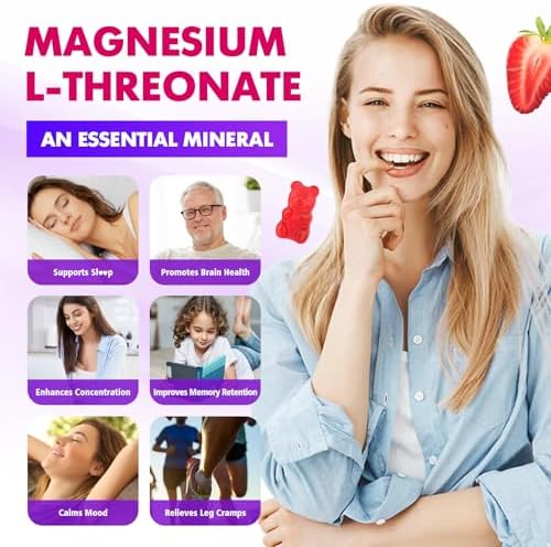 1000mg Magnesium L-Threonate Gummies for Kids & Adults - Muscle & Nervous System Support, Vegan, Sugar-Free Strawberry Flavor, 120 Gummies