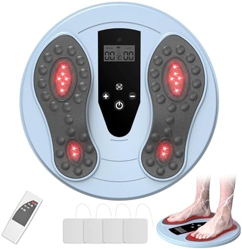 - Portable and Rechargeable: This portable ems foot stimulator is lightweight and compact, weighing only 2.4lb and with a thickness of just 0.98 inches, making it ideal for daily use at the office, gym, or while traveling. It comes equipped with an LCD screen and a remote control for easy operation.