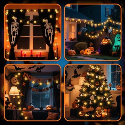- Connectable Plug-in String Lights: This Halloween string lights is plug in 120V, the total length of 9.83FT, one set orange fairy lights can connect to the same one, mostly can hold up 25 strand same string lights into a beautiful display for Halloween party decorations.The white ghost lantern string lights is suitable for hanging on the Halloween tree.