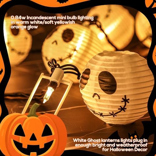 - Halloween White Lantern Decorations: These lantern string lights provide the perfect addition to your balcony or the porch for Halloween decorations. White Ghost decor Halloween lantern lights great for Halloween tree, parties, mantel, outside entryway, garden, patio or yard.