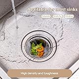 - This 100 - pack of disposable kitchen sink strainer nets is a practical addition to your kitchen essentials. The fine - mesh structure effectively captures food waste, vegetable peels, and other debris, safeguarding your drains from clogs. Their disposable feature means no more messy cleanups; simply discard them when full. These nets are stretchy and fit most standard kitchen sink drains, adapting easily to different sizes. Built with durable materials, they can withstand water flow and debris weight without tearing