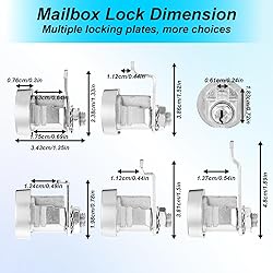 Premium Durability: The mailbox lock uses metal, ensuring it is a top-quality replacement for longevity. Enhanced Security: This mailbox locks with keys to safeguard your mail, providing peace of mind with increased mailbox security. Comprehensive Package: Mail box lock and key includes a lock cylinder, 3 matching keys, 5 locking tabs, and 1 nut. Wide Compatibility: Designed to fit various mailbox models, this mailbox latch versatility makes it an ideal choice for different mail systems. Simple Installation: Complete your replacement mail box lock and key setup in five minutes with included accessories, making the process straightforward and user-friendly.