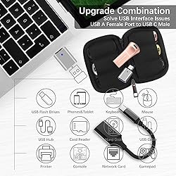 VERSATILE SET: Complete 5-Piece Set for All Your Storage Needs. Includes 5 high-speed USB 2.0 flash drives, 2 versatile USB C adapters, and a soft, durable carrying case—good for organizing files across laptops, phones, and tablets. The compact case keeps everything tidy and portable, ideal for students, professionals, and on-the-go users COLOR CODING: 4 colors for easy organization: black, golden, pink, silver. Color-code files by project, category, or user to quickly identify content, whether it's work, family photos, or schoolwork COMPATIBILITY: Plug-and-play functionality works seamlessly with Windows, macOS, and Linux systems through standard USB A ports SMART DESIGN: Ergonomic arc shape with non-slip grip and zinc alloy metal shell for durability and easy handling in tight spaces PORTABLE STORAGE: Soft carrying case protects all drives and adapters from dust and damage while keeping them organized and easily accessible Use the included USB C adapters to connect directly to smartphones and tablets. Transfer files between your phone's USB C port and the flash drive for sharing videos, accessing work files, or clearing phone storage 1GB=1,000,000,000 bytes. Due to the different calculation methods of the device operating system, the actual usage capacity may be lower than the capacity indicated on the product label. The actual usage capacity is higher than 57GB