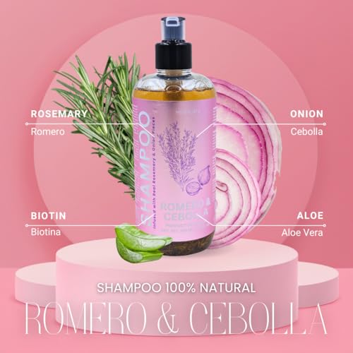 Viral Shampoo Rosemary, Onion & Biotin 16.9 fl oz (Shampoo de Cebolla & Romero) – Strengthens Roots, Boosts Growth & Adds Shine – With Real Botanicals – 100% Natural & Handcrafted