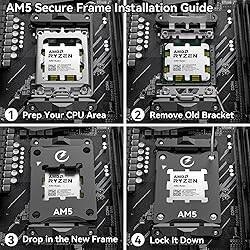 【Even Pressure & CPU Bending Prevention】GSCOLER AM5 Secure Frame fixes AMD's stock mounting flaws! Its CNC-machined design evenly distributes pressure across the CPU, preventing bending, socket pin damage, and thermal paste spillage. Ideal for overclockers—keep your AMD Ryzen rock-solid under heavy cooling loads. 【Premium Anodized Aluminum & Durability】Crafted from anodized aluminum alloy, this frame resists scratches/oxidation. Rounded edges protect your motherboard, while precision - cut slots fit AM5 CPU like a glove—long - lasting stability for high - end builds. 【Tool - Free Install & All - in - One Kit】Install in 4 steps: prep, remove old bracket, drop in new frame, lock down! Kit includes L - shaped screwdriver, 4 screws, and thermal paste—no extra shopping. Follow the manual/video, and your AM5 build gets a pro - level upgrade in minutes. 【Exclusive AM5 Compatibility】Designed ONLY for AMD AM5 CPUs (7800X3D/9950X3D etc.) and X670/B650 chipsets. Perfectly matches AM5 motherboard slots—no compatibility headaches. Product size: 73 (L) × 54 (W) × 7(H) mm. Weight: 34.1g. A must - have for DIY gamers/enthusiasts building AM5 rigs. 【Capacitor Protection & Cooler Performance Boost】Precision CNC cuts avoid capacitor contact, reducing short - circuit risks. By stabilizing pressure, it ensures your cooler (AIO/air) performs at max—lower temps, quieter fans. Turn your AM5 PC into a stable, high - performance beast!