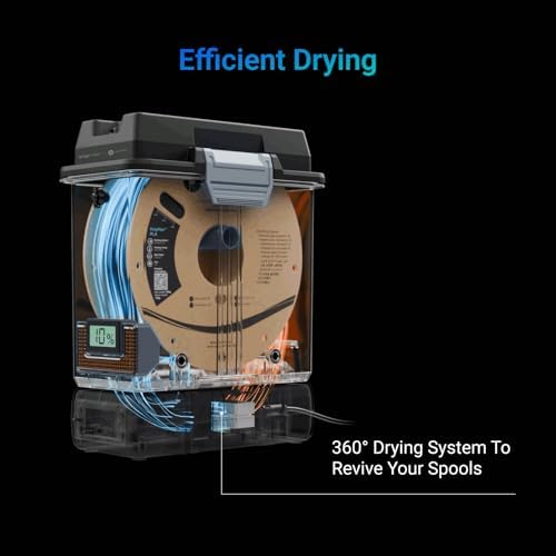 - 【Precision Heating & Superior Sealing】-A powerful PTC heating element combined with 360° airflow ensures that your filament is dried quickly and evenly—without overheating. Meanwhile, the Dryer Box forms an airtight seal that locks out moisture and contaminants, preserving filament quality even between printing sessions.