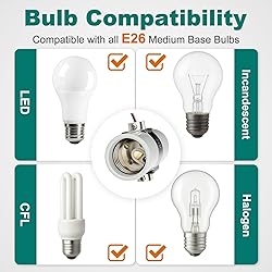 Powerful Functionality: DiCUNO Dual Bulb Socket features two E26 female threaded sockets and three 11.8-inch leads, allowing you to install two bulbs into a single socket with ease. Ideal for lighting repairs or DIY projects such as garage task lights, skateboard lights, or up-down cylinder fixtures. Durable & Heat-Resistant: Made from high-quality porcelain, this E26 double light socket is UL-listed and rated for 660W and 250V. With heat resistance up to 105°C, it safely accommodates high-wattage halogen and incandescent bulbs—perfect for demanding lighting setups. Quick & Easy Installation: The twin Light Fixture comes with three pre-stripped 11.8-inch leads for fast wiring. With a standard E26 threaded base and 1/8 IP bushing strap, it easily—just wire it, then screw in your bulbs, and light up your space. A hassle-free solution for upgrading old fixtures. Wide Compatibility: Compatible with LED, CFL, halogen, and incandescent bulbs, this two-head E26 porcelain socket is perfect for pendant lights, workshop lights, wall sconces, floor lamps, and more. Ideal for kitchens, bedrooms, living rooms, or garages—delivering flexibility and practicality for various lighting needs. Warranty: DiCUNO offers a worry-free purchasing experience with a 3-month refund and a 1-year warranty. This reliable service ensures customer satisfaction and long-term confidence in your lighting solution.