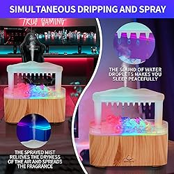 - This is essential oil diffuser that can air mist and water drip at the same time. Its spray can increase the air humidity and keep a good mood when watching the water drip. The aromatherapy diffuser is equipped with crystal stones, which can make the light better. Eight kinds of lights and RBG lights provide choices. Through the crystal stones and different lights, you can create an atmosphere you like, making you more relaxed and happy.