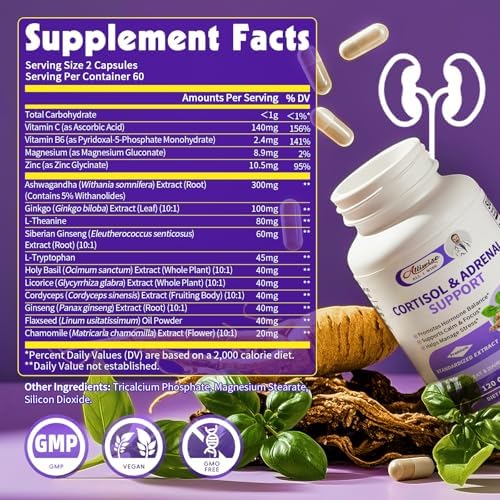 - Purity, Quality & Our Promise : Your health is our priority. Our Cortisol & Adrenal Support supplement is Vegan, Non-GMO, and free from gluten, dairy, wheat, and common allergens. You can have complete peace of mind knowing you're fueling you with a clean, pure, and high-quality product.