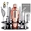 Cocktail Shaker Set Bartender Kit with Stand - 16 Piece Bar Tool Set Drink Mixer Set Includes : 25oz Shakers, Jigger, Strainer, Mixer Spoon, Muddler, Liquor Pourers, Straw (Silver)