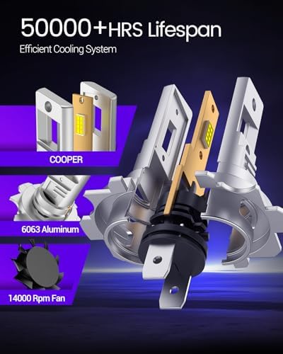 - 【Built to Last - 50,000+ Hour Lifespan】 - Crafted with premium aviation-grade aluminum & copper baseboard, these H7 bulb are incredibly durable. The high-speed cooling fan prevents overheating, enabling a remarkable 60,000+ hours of stable light. Save money & time on frequent replacements