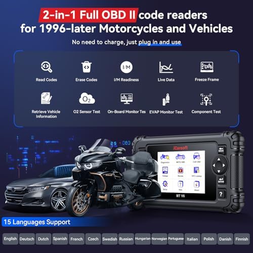 - 【Save more from motorcycle maintenance and become a motorcycle mechanic now! 】 iCarsoft MT V6 for Honda motorcycles has all systems diagnosis, battery test and 7 maintenance functions to help you perform comprehensive diagnosis and DIY maintenance for Honda brand motorcycles. It is also an OBD2 scanner for cars and motorcycles, which can diagnose the engine systems of most cars and motorcycles