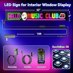 Large Programmable LED Sign, P5 Resolution Indoor Store LED Sign, Bluetooth APP, for Business Retail Shop Window Display (32"x 6")