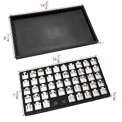 - Display your earrings in style with the Ikee Design 2-Piece Earring Display Tray Set. Each black tray features a soft, flocked plastic insert that holds up to 50 earring cards, offering a professional and elegant way to showcase your jewelry. The set includes 100 white earring puffy cards, perfect for studs, dangles, and hoops.The trays making them ideal for travel, retail counters, or personal vanity organization. Thoughtfully designed with individual slots and easy-lift tabs, each compartment provides effortless access while protecting your earrings from scratches or tangling.Crafted from durable plastic and PVC, these trays are lightweight, stackable, and easy to store and maximizing your space without sacrificing style. Whether you're a retailer or a jewelry enthusiast, this set keeps your collection neatly displayed and easy to browse.