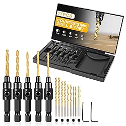 MATERIAL: countersink drill bit is made of high quality titanium-coated high-speed steel, wear-resistant, roughness-resistant, which can extend the life of the drill bit. Tapered drill bit quickly drills clean and smooth holes. SIZE: counter sink drill bit for wood #5(5/64“) #6(3/32”) #8(7/64“) #10(1/8”) #12(9/64"), to meet the different needs of multiple sizes. ADJUSTABLE: The brocas para madera can be freely adjusted in its depth to meet the entry of screws of different depths. The countersunk hole inverted angle is 82 degrees, ideal for woodworking plus want. SCOPE OF APPLICATION: countersink drill bit set for wood is suitable for many models of drilling rigs, including manual drilling rigs, bench drilling rigs and electric drilling rigs. Softwood and hardwood can be used. WHAT YOU WILL GET: When you buy our countersink drill bit set, you will have 5 countersink drill bits, 10 replaceable drill bits, 5 stop screws, 2 hexagonal wrenches, 1 high quality leather storage bag, and 1 beautiful gift box. If you have any questions, we will be ready to serve you 24 hours a day.