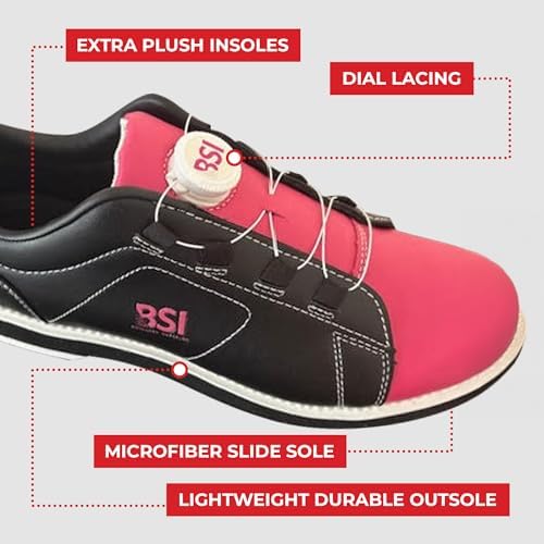 *** Dial In Your Fit, Dial In Your Game ***Step up your style and your strikes with the Women's Revival Dial Shoe—retro-inspired and performance-built. Lightweight, durable, and comfortable from the first frame to the last, they’re designed to keep you focused on the pins, not your feet. Whether you're a league regular or weekend enthusiast, BSI delivers the comfort, fit, and style you’ve been looking for—right out of the box.*** Custom Fit in Seconds ***No laces, no problem! The innovative dial lacing system lets you lock in a secure, custom fit with a simple twist, so you're always ready to roll. The extra durable outsole provides superior grip and support, handling everything from intense tournaments to casual games.*** Glide Like A Pro ***Experience the perfect slide every time with enhanced comfort and support. These shoes are crafted for form, function, and fashion, offering premium performance and a polished look. Inside, the cushioned support delivers cloud-like comfort, reducing fatigue so you can stay focused and perform your best through every frame.*** All-Day Comfort, Head-Turning Style ***Say goodbye to foot fatigue—BSI’s cushioned insole supports your feet through every game, keeping you comfortable and focused. When it comes to style, these shoes pair perfectly with BSI bowling bags for a clean, coordinated look that stands out on and off the lanes.*** Affordable Performance With BSI ***BSI offers professional-quality bowling shoes without the hefty price tag. As a family-owned brand, we deliver classic bowling shoes and supplies that provide unbeatable comfort, durability, and performance, giving you a competitive edge at a price that won’t break your budget. Ready to bowl your best? Upgrade your gear today!