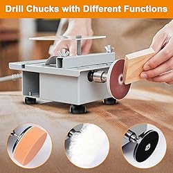 Critical Reminders 1. When powered on, the saw blade cutting and sanding/polishing functions activate simultaneously. So never install the saw blade if cutting is not required and avoid hand contact with the blade during operation. 2. Avoid rapid material feed to prevent blade jamming and motor overload. 3. 15mm/0.59" cutting thickness max so this mini table saw is not suitable for cutting materials that are too large, too wide, and too thick. 【Beginner-Friendly】The Sinpiode Mini Table Saw (7.48×8.66×2.17in) is ultra-portable yet handles precise cuts on wood/plastic. Designed for novices and experts alike, it combines user-friendly operation with safety-focused design, delivering efficiency in compact tasks without compromising accuracy. 【Multi-functional Mini Table Saw】The Sinpiode table saw specializes in precision cutting of small components, compatible with PCB boards, wood/plastic sheets, thin boards, cans, and copper/aluminum tubes. Equipped with 4 specialized blades—PCB cutter, High-Speed Steel (HSS), alloy, and resin—it adapts to diverse materials with optimal blade-to-task matching. 【High-Torque Motor & 7-Speed Control】 The Sinpiode mini table saw features a 100W all-copper motor (6000 RPM max) with 7 adjustable speeds, delivering stable precision for cutting, sanding, and multi-material tasks. 【Precision Cutting System】Equipped with laser-etched guides and a cast iron worktable for ±0.2mm accuracy. Features shock-absorbing base pads, a transparent debris guard, and 0.5–3.2mm flexible shaft compatibility – all engineered to stabilize delicate cuts on PCB/acrylic/copper materials.