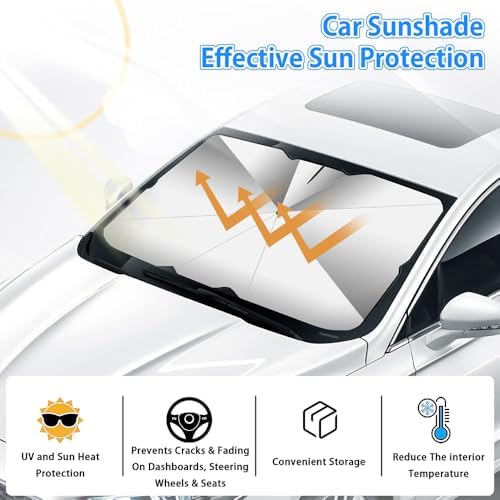 - 【Durable Material】: Our car windshield visor uses carefully selected high-strength reflective film material as the support frame, and is equipped with a high-toughness spring structure; Even if it is folded for a long time, it will not break or deform; It has good flexibility and long-lasting durability, and accompanies you every time you go out