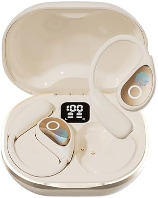 Open Ear Earbuds wireless bluetooth Headphones 5.4 Sports with Smart Digital Display,Clear Calls,50H Playtime,IPX4 Waterproof,Lightweight Over Ear Buds Design for Cycling, Running, Workout(Beige)
