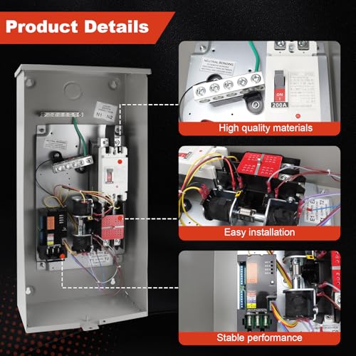 - 【Compatibility】 :This 200 Amp Single Phase Generator Automatic Transfer Switch compatible with Generac RXSW200A3 Automatic Smart Transfer Switch,120/240-volt Compatible with 8-24 KW home standby generators.Designed for use with single-phase generators, this transfer switch seamlessly transfers power from utility to generator