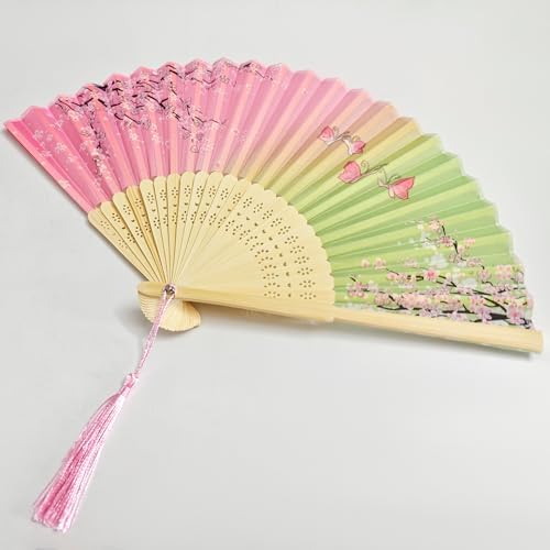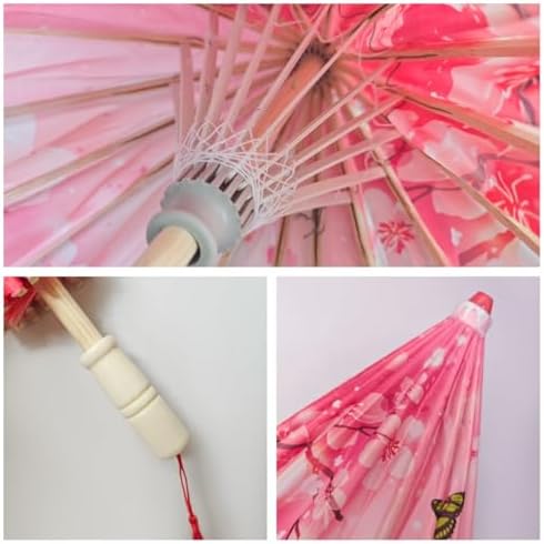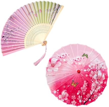 Cherry Blossom Oil Paper Umbrellas & Silk Fans Set - Chinese Japanese Classical Wedding Decor, Birthday Party Photo Props