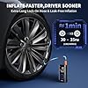 - 【POWERFUL HIGH-VOLTAGE BATTERY】 Equipped with a 5200mAh high-voltage battery, a single full charge can inflate up to 15 car tires (195/65/R15) to 30-35 PSI. The battery meets UL 2054 standards and shows minimal degradation even after being unused for over a year, ensuring reliable performance when you need it most