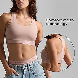 - A daily wear bra providing medium support, featuring a triple-layer front. Ideal for activities such as yoga, hiking, barre, travel, gardening, stretching, and errands. Our New Comfort Mesh technology ensures coverage and lift, offering maximum comfort without cups or underwire. It boasts a tag-free care label, smooth finish, no chafing or visible seams, and a woven jacquard elastic underband that maintains its shape and color. This classic racerback style includes a scooped neckline.