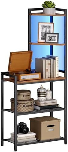 HOOBRO 5-Tier Corner Shelf Stand, Corner Shelf with LED Light, 56.3" Tall Corner Bookshelf, Display Rack Storage Organizer with Table, for Small Spaces, Living Room, Entryway, Rustic Brown BF69DCJ01